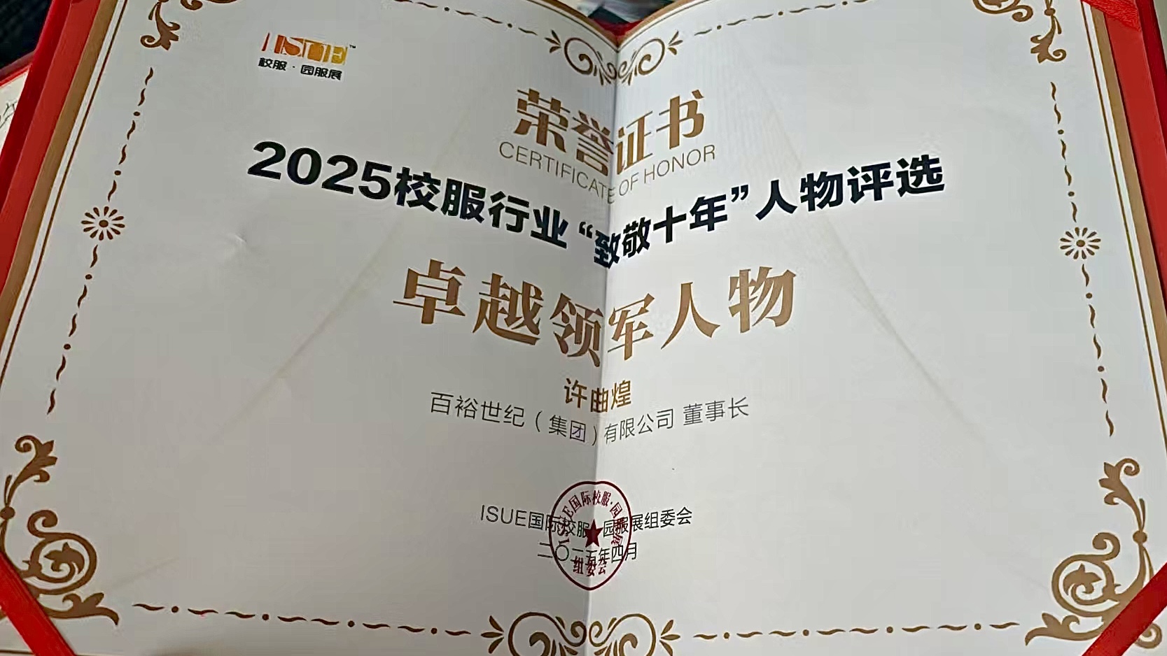 百裕集團(tuán)董事長許曲煌先生憑借其在校服行業(yè)的卓越領(lǐng)導(dǎo)力、創(chuàng)新實踐與深遠(yuǎn)貢獻(xiàn),榮膺“致敬十年·卓越領(lǐng)軍人物”稱號。這一榮譽不僅是對其個人成就的高度認(rèn)可,更是對百裕集團(tuán)深耕校服領(lǐng)域、推動行業(yè)高質(zhì)量發(fā)展的集體褒獎。