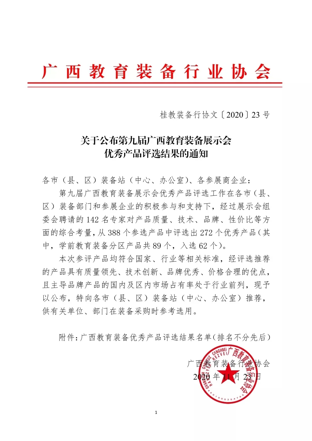 第九屆廣西教育裝備展示會優(yōu)秀產(chǎn)品評選工作在各市(縣、區(qū))裝備部門和參展企業(yè)的積極參與和支持下,經(jīng)過展示會組委會聘請的142名專家現(xiàn)場對參賽產(chǎn)品質(zhì)量、技術(shù)、品牌、性價比等方面的綜合考量,從388個參選產(chǎn)品中評選出272個優(yōu)秀產(chǎn)品。