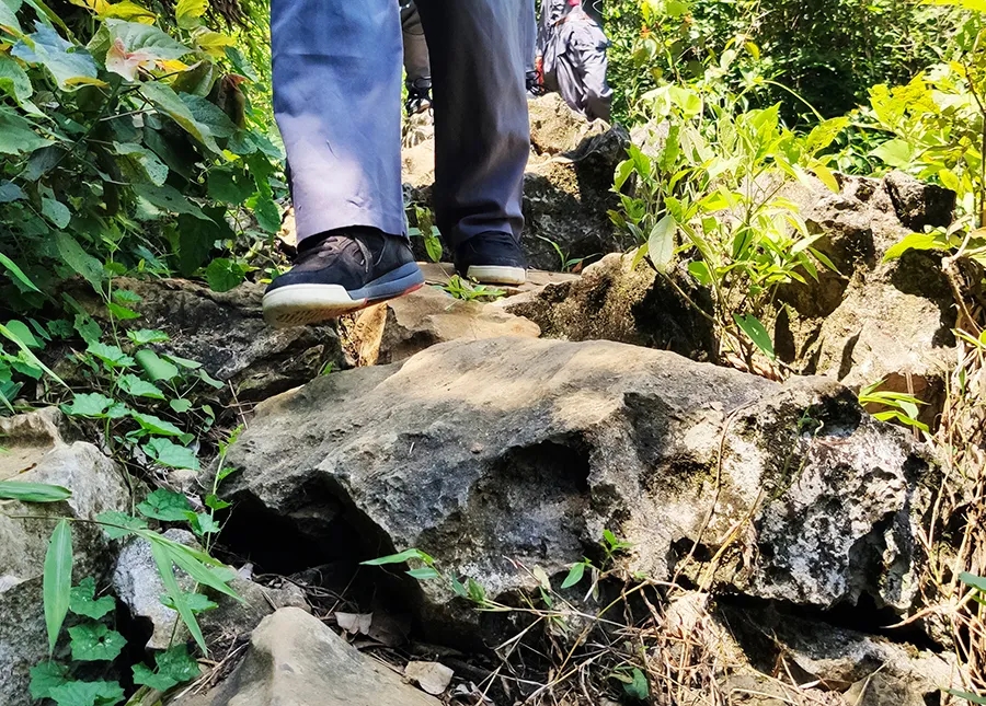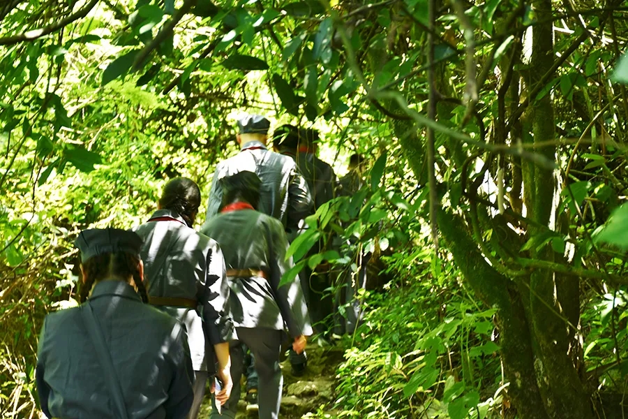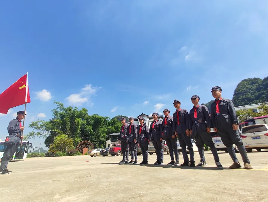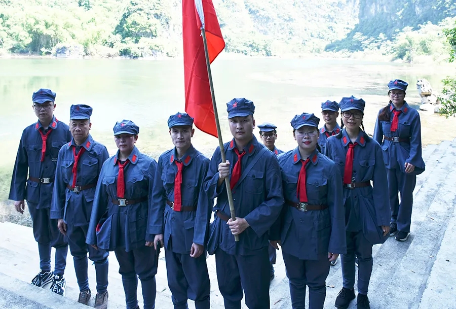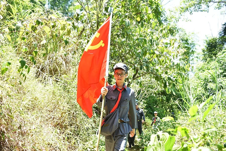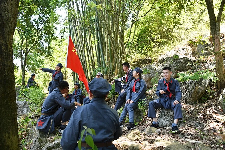 途中,黨員干部了解了鄧小平領(lǐng)導(dǎo)的紅八軍和左江革命委員會舉行反帝斗爭、張云逸同志在平馬勝利會師等龍州起義歷史故事,唱著紅歌,走在蜿蜒崎嶇的山路上,黨旗迎風(fēng)飄揚,黨員干部體驗了革命的艱辛和困苦,同時感受紅軍無所畏懼、勇往直前的使命和擔(dān)當(dāng)。