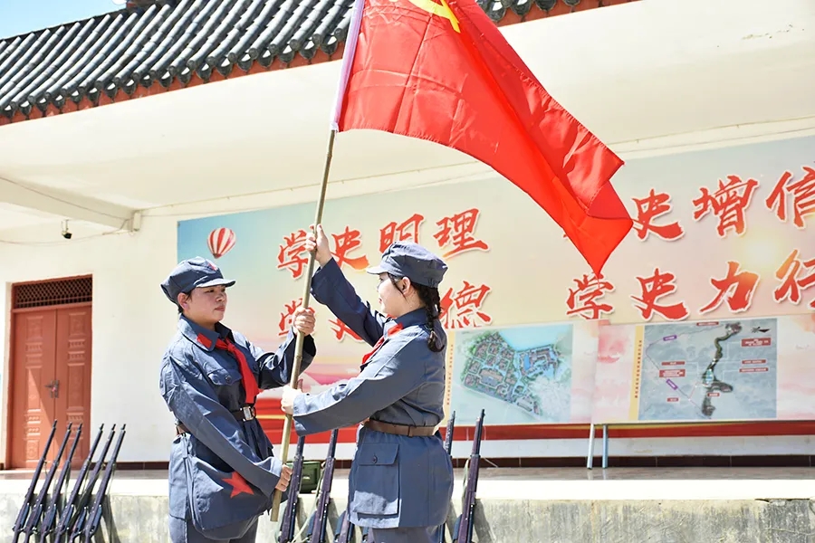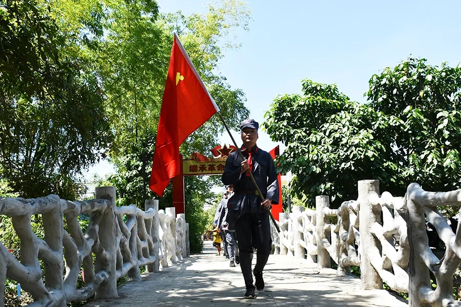 當(dāng)天,參加活動黨員干部懷揣著敬慕與感恩之心,穿上紅軍服戴上紅軍帽,模擬紅八軍建制,編隊整訓(xùn),沿著革命先輩的足跡,徒步重走一次紅軍路,舉行簡單的授旗儀式后,學(xué)員們高舉旗幟,從水隴徒步至甫茶,追憶紅軍革命精神,傳承紅色精神!