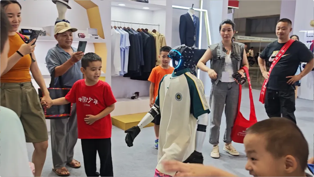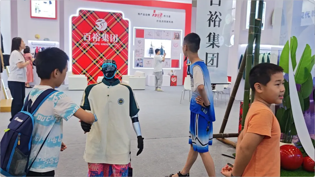 展會(huì)期間,還有智能機(jī)器人身著百裕集團(tuán)校服,在展館內(nèi)巡游并與觀眾互動(dòng)。這一創(chuàng)新場景,成為了全場矚目的焦點(diǎn)。當(dāng)傳統(tǒng)校服文化與前沿AI機(jī)器人技術(shù)相遇,碰撞出的不僅是視覺上的新奇體驗(yàn),更是對“科技賦能教育,裝備服務(wù)未來”理念的具象化表達(dá)。