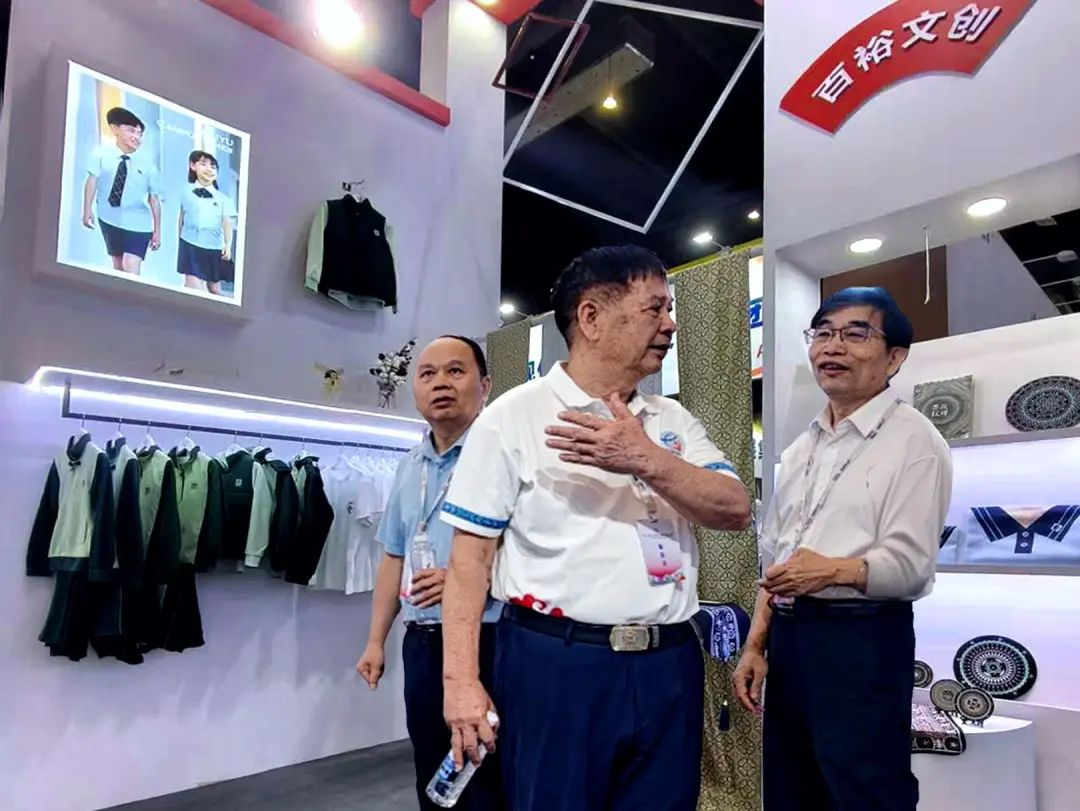 百裕集團(tuán)展位備受矚目,教育部關(guān)心下一代工作委員會(huì)常務(wù)副主任、中國教育裝備行業(yè)協(xié)會(huì)專家委員會(huì)主任王富,廣西貿(mào)促會(huì)黨組成員、副會(huì)長、廣西國際商會(huì)副會(huì)長劉樹義,自治區(qū)教育廳原二級巡視員、廣西民族教育發(fā)展基金會(huì)副理事長陳標(biāo)智,廣西教育技術(shù)和信息化中心主任肖榮亮,廣西教育裝備行業(yè)協(xié)會(huì)創(chuàng)會(huì)會(huì)長陳鐵華,廣西教育裝備行業(yè)協(xié)會(huì)代會(huì)長貴尚明等領(lǐng)導(dǎo)嘉賓蒞臨展位指導(dǎo)。他們對百裕集團(tuán)將民族文化特色與現(xiàn)代校服設(shè)計(jì)理念相融合的創(chuàng)意實(shí)踐表示贊賞,充分認(rèn)可百裕集團(tuán)在推動(dòng)教育裝備高質(zhì)量發(fā)展所作出的積極貢獻(xiàn),領(lǐng)導(dǎo)及嘉賓暖心的關(guān)懷與指導(dǎo),是百裕集團(tuán)在未來的發(fā)展道路上的強(qiáng)勁動(dòng)力。