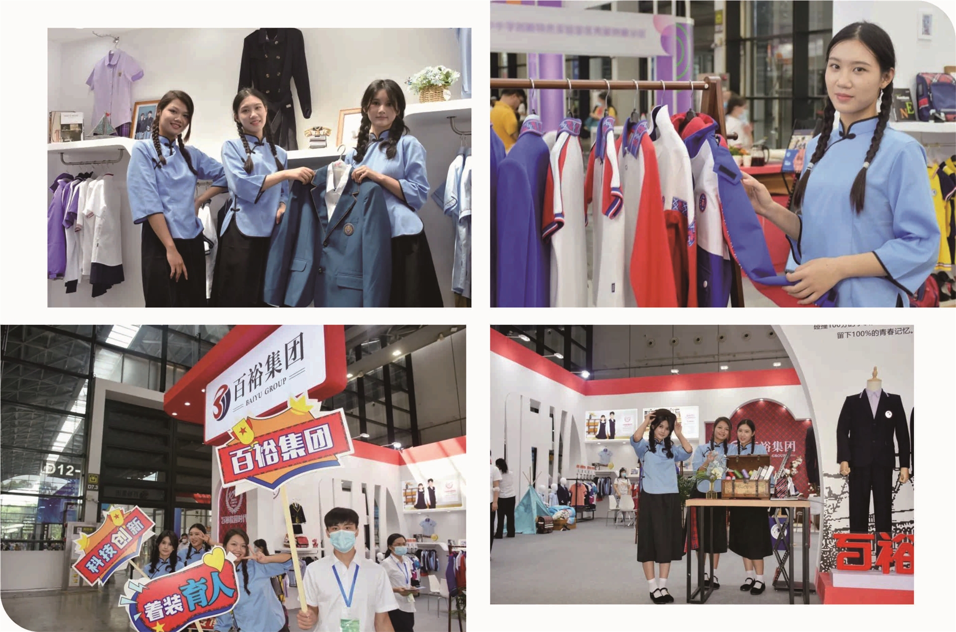 百裕集團(tuán)在本次展會亮相的“百裕校園時代”中小學(xué)校園服飾、“愛樂學(xué)”園服、“喬派恩”職業(yè)裝系列,向參觀者展示了校園服飾與民族文化相結(jié)合的獨特魅力,不斷吸引了眾多參觀者駐足與關(guān)注。