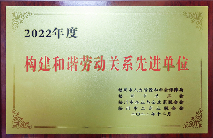 根據(jù)梧州市人力資源和社會(huì)保障局、梧州市總工會(huì)、梧州市企業(yè)與企業(yè)家聯(lián)合會(huì)、梧州市工商業(yè)聯(lián)合會(huì)公布了《2022年度梧州市構(gòu)建和諧勞動(dòng)關(guān)系先進(jìn)單位名單》的通知,表彰了一批有力維護(hù)和諧勞動(dòng)關(guān)系、切實(shí)保障職工權(quán)益的優(yōu)秀企業(yè),百裕世紀(jì)(集團(tuán))有限公司光榮在榜。