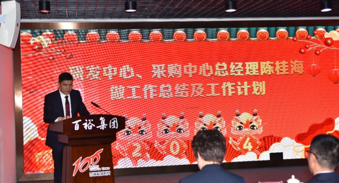 2024年2月19--20日,百裕集團(tuán)在福建惠安召開2023年終總結(jié)暨2024年工作會(huì)議,營銷中心人員、研發(fā)中心部門負(fù)責(zé)人、財(cái)務(wù)部門負(fù)責(zé)人、各生產(chǎn)部及分廠廠長、負(fù)責(zé)人;百裕事業(yè)合伙人等齊聚一堂,共同回顧過去一年的工作成果、表彰先進(jìn)、總結(jié)經(jīng)驗(yàn),交流分享,為公司的未來發(fā)展描繪藍(lán)圖,并明確了2024年的工作目標(biāo)和發(fā)展戰(zhàn)略,會(huì)議由營銷中心市場總監(jiān)曾凱蘭主持。