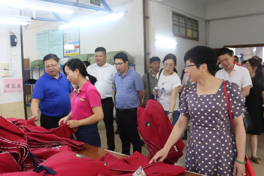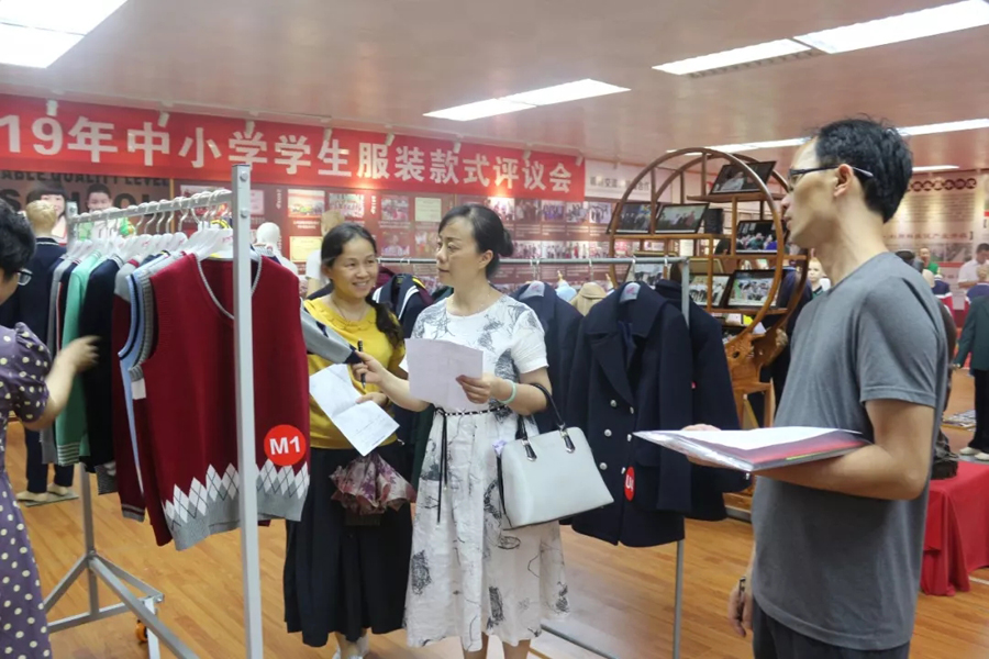 交流會后,參會代表們一同參觀了百裕集團生產(chǎn)車間,同時對2019年梧州市中小學(xué)學(xué)生服裝款式進行評議。